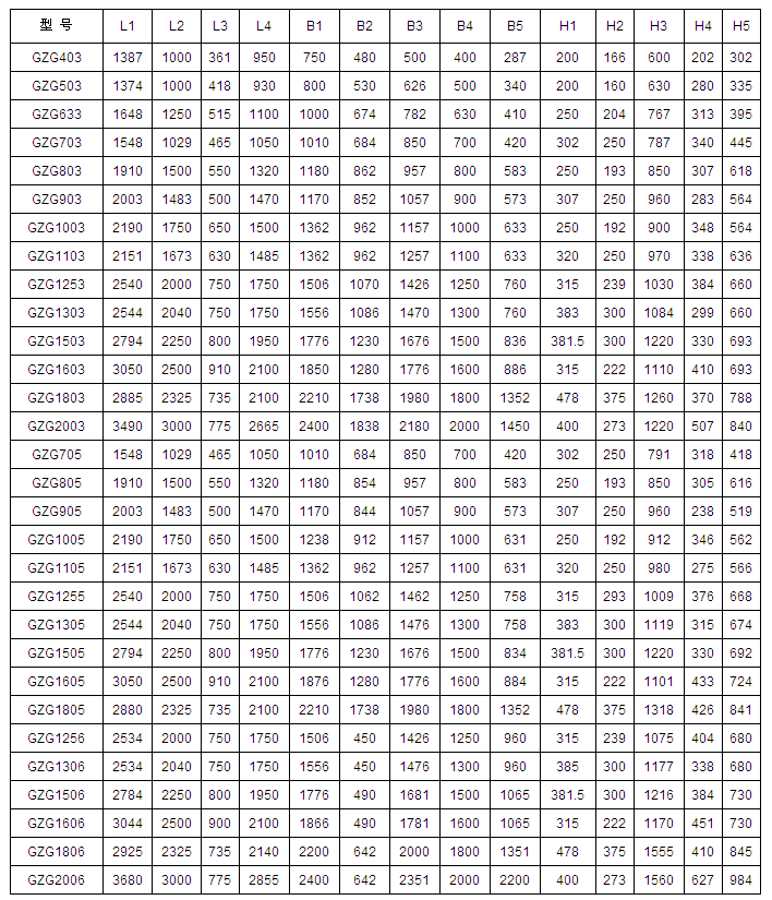 GZG1606 | 1600×2500×315 | 830 | 1190 | 500 | 5 | ZG636 | 2×5.55 | 2×2.2 | 1720 | |||