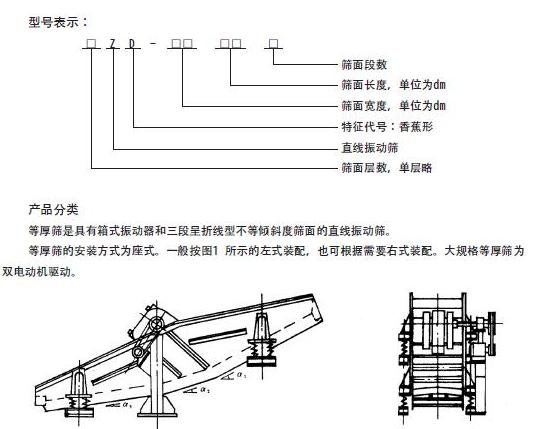 ZD系列等厚振動篩(直線香蕉篩、弧形篩)的篩面是由箱式振動器以及多段不同傾角面組成的近弧形面組成。
