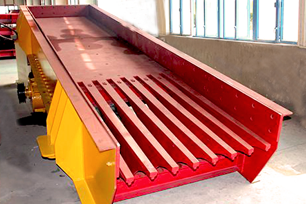 棒條式振動給料機在工作過程中可把塊狀、顆粒狀物料從貯料倉中均勻、定時、連續的送入受料裝置,在沙石生產線中可為破碎機械連續均勻的喂料,并為物料進行粗篩分。其適用于破碎機前大塊物料的均勻給料。特別適用于黑色或有色金屬礦石、建筑石料粗碎前的給料,是粗碎破碎機前配套給料的理想設備。